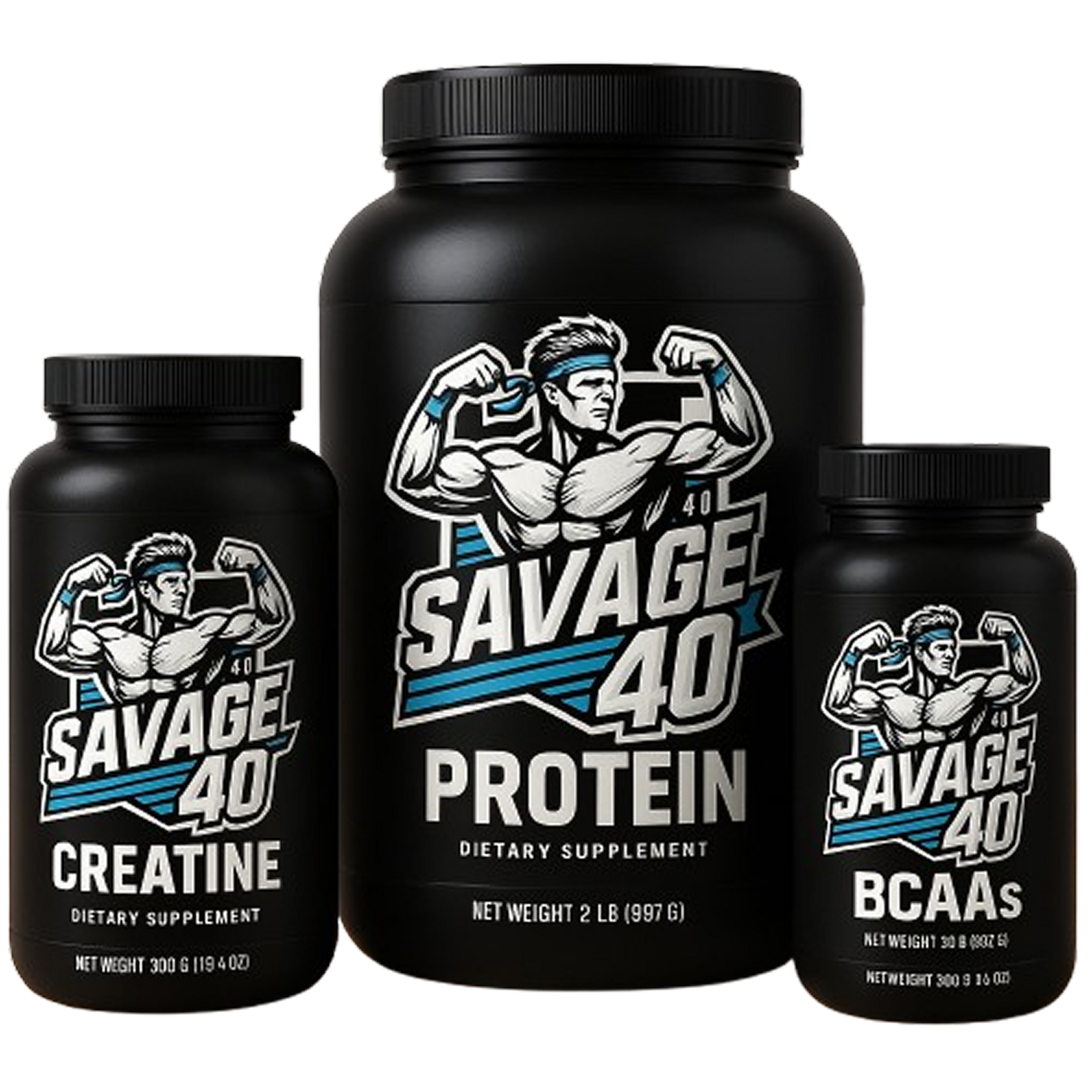 - Savage 40 Supplements: Your body isn't 20 anymore, you need proper supplements like BCAA's and Protein to help you FastTrack your way to success.